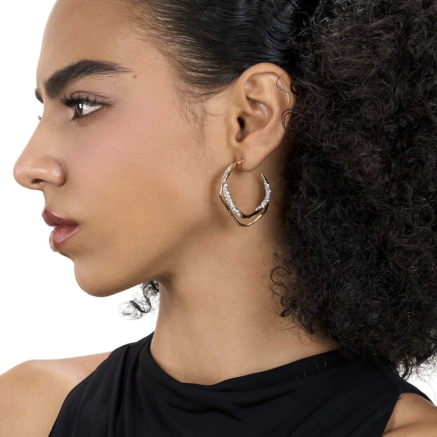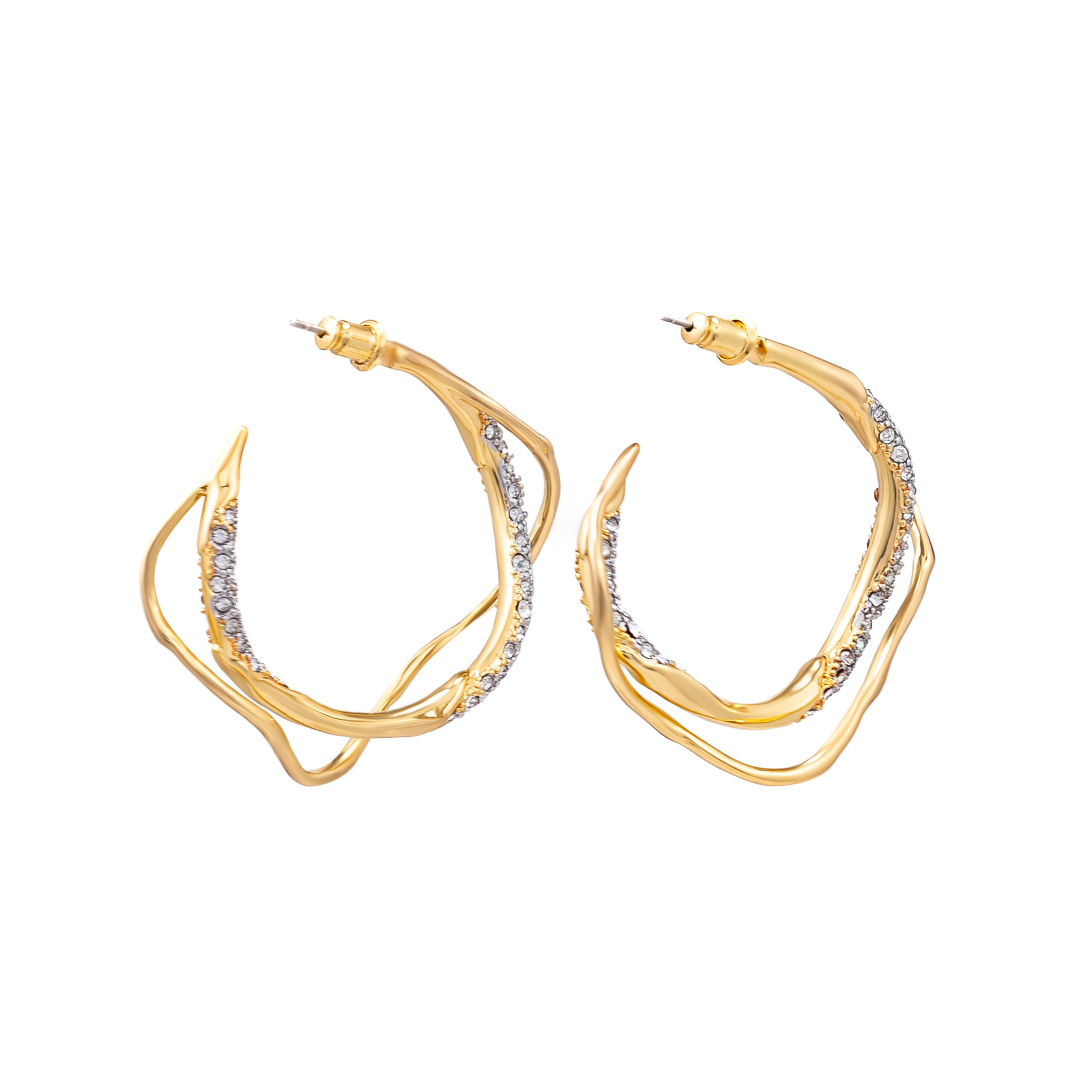 Alice blends organic, wave-like lines with precision-set 3A cubic zirconia for a luminous dual-tone finish. At 11g and 35 × 38mm, it delivers bold elegance with a lightweight feel and secure 925 silver post.