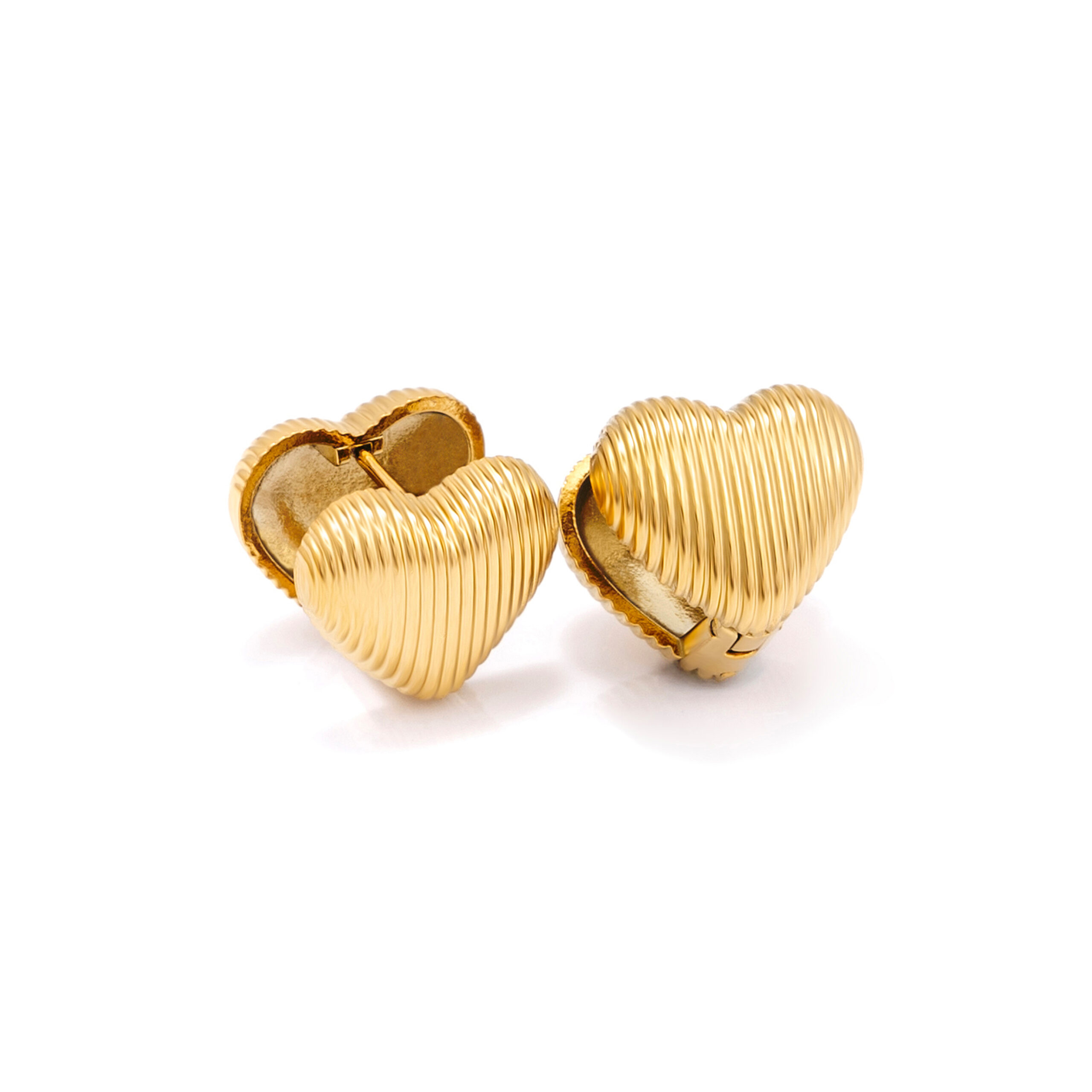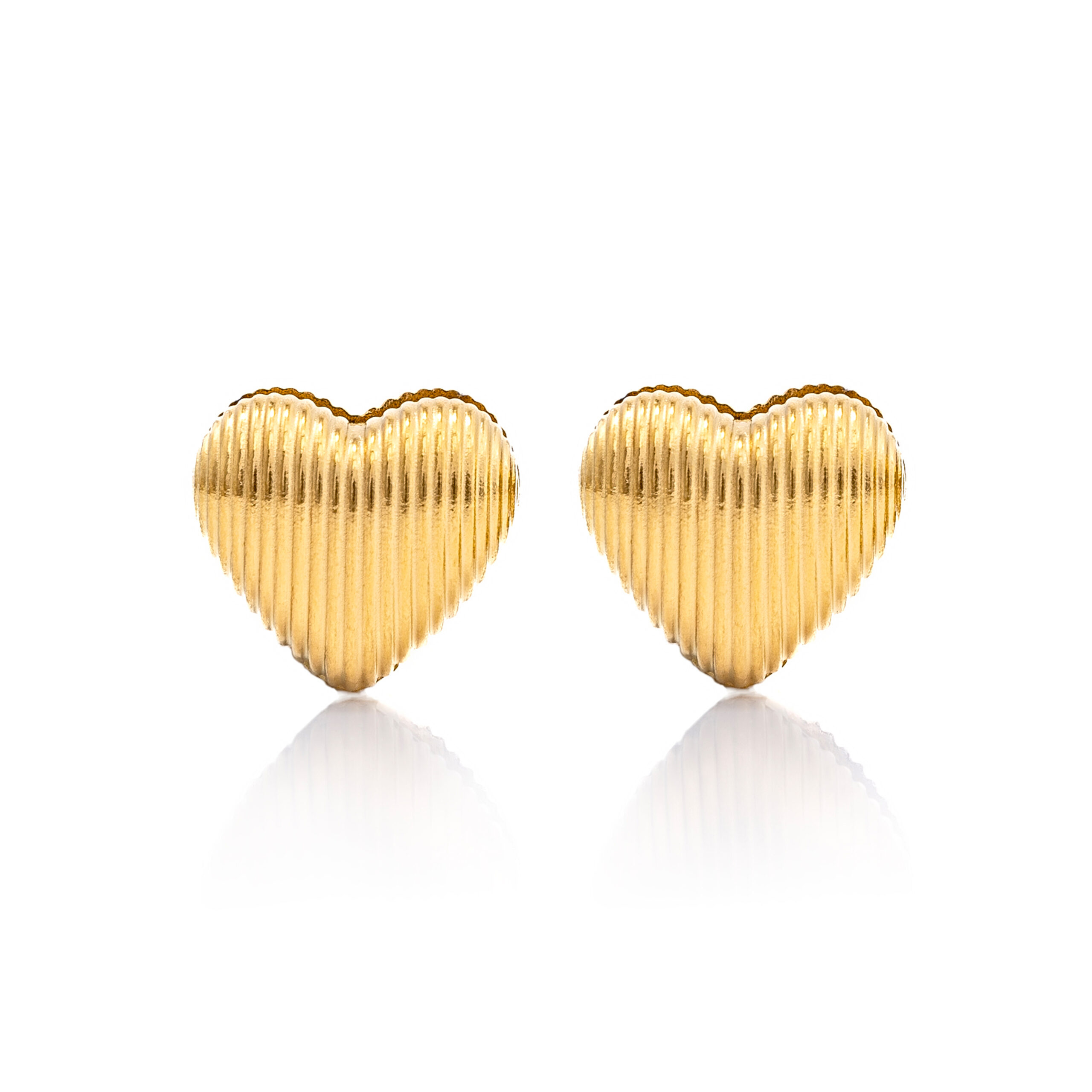 A sculpted ribbed-gold heart made from durable stainless steel. Finished with premium electroplating and sized at 15.1 × 12.7 × 15.5mm, this 8g piece brings a clean, statement look without the bulk.