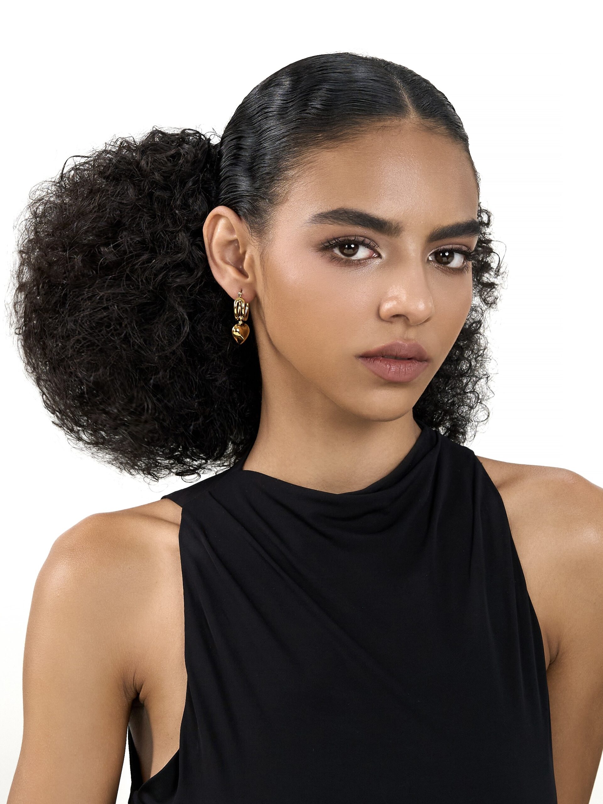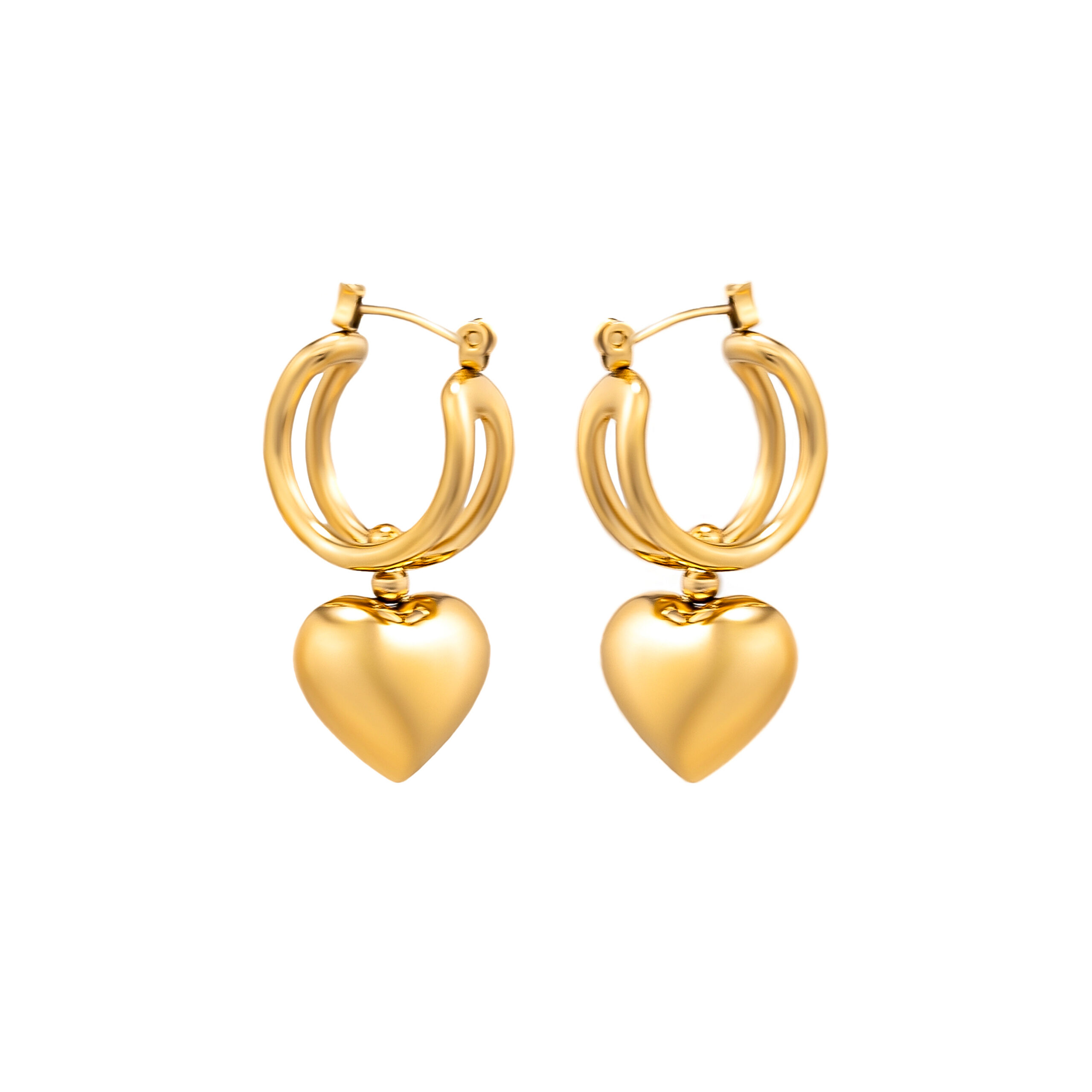 Layered hoops meet a sculpted heart pendant for a confident, standout look. Crafted from durable stainless steel and weighing 10g, the Jenni design blends playful shape with elevated polish.