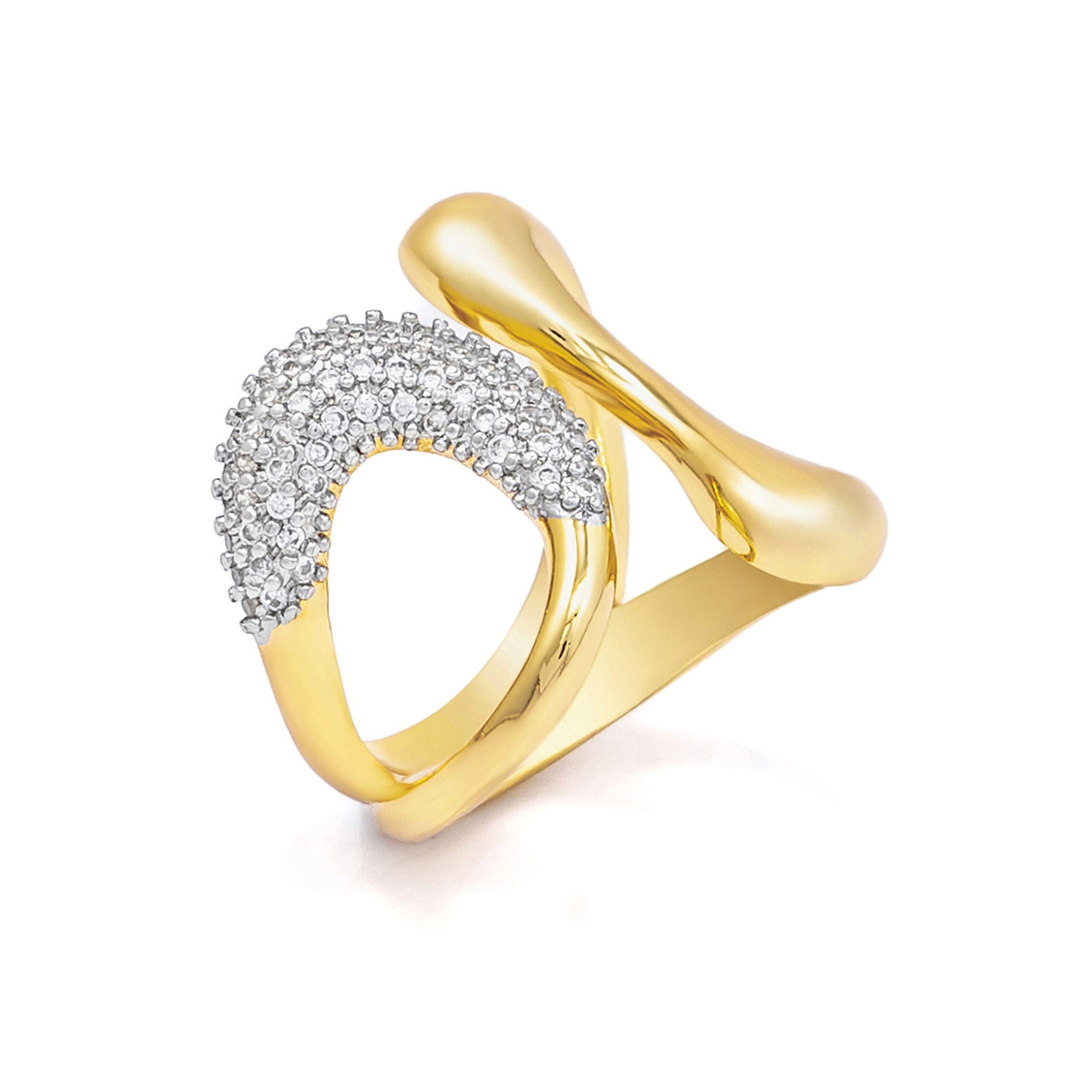 Smooth curves and a solid 6.98 g build give the Laura Ring confident weight and visual strength. Its open-ended design allows flexibility while maintaining a bold, polished gold statement.