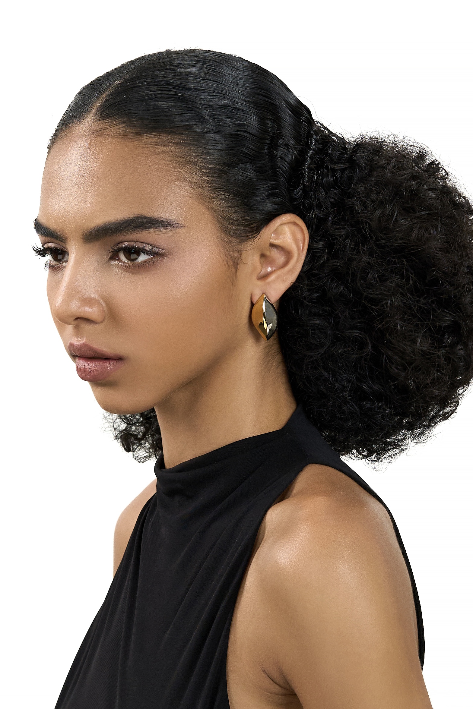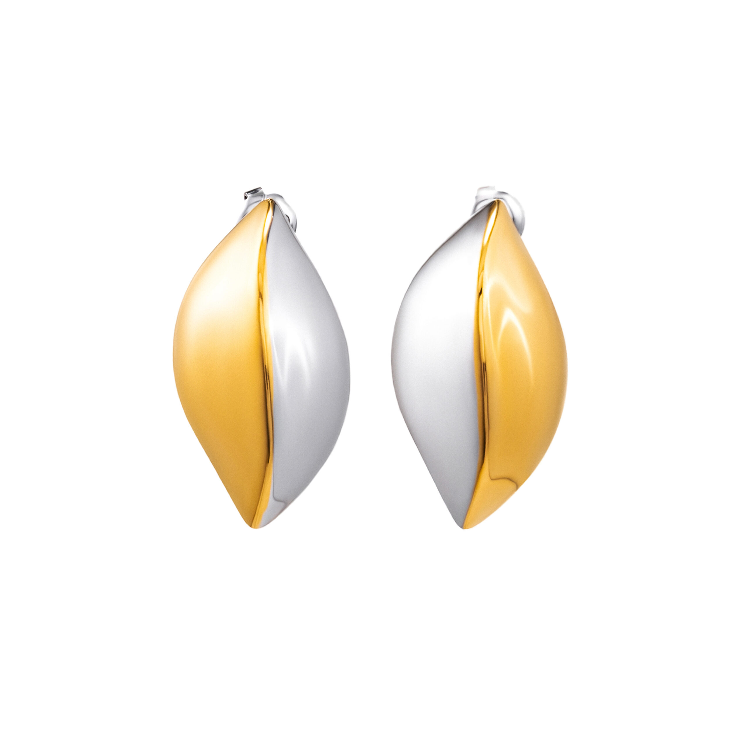 A smooth two-tone silhouette crafted from stainless steel and finished in polished electroplating. At 9.8g and 17.2 × 32.3mm, the Lydia earring delivers sleek contrast with refined shine.