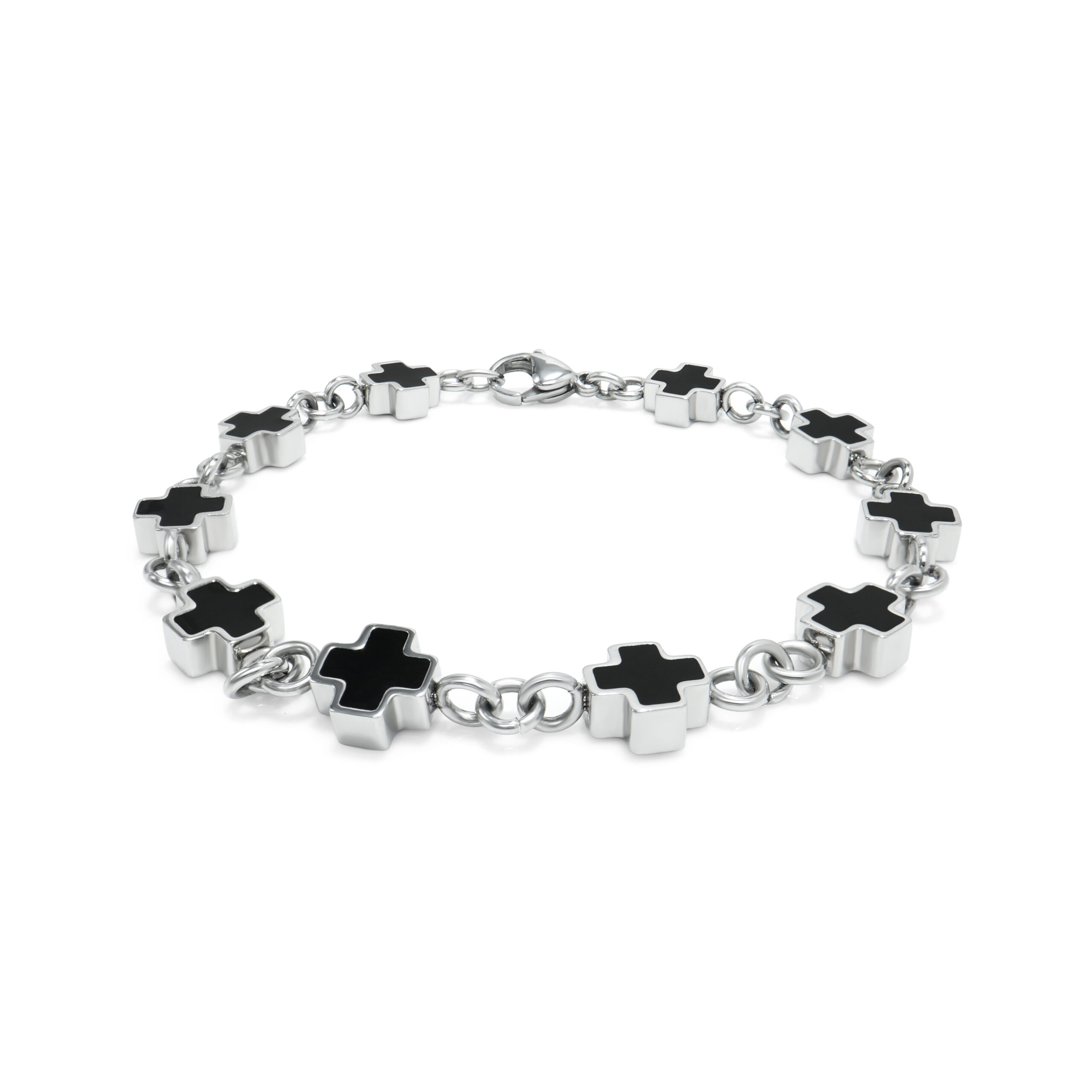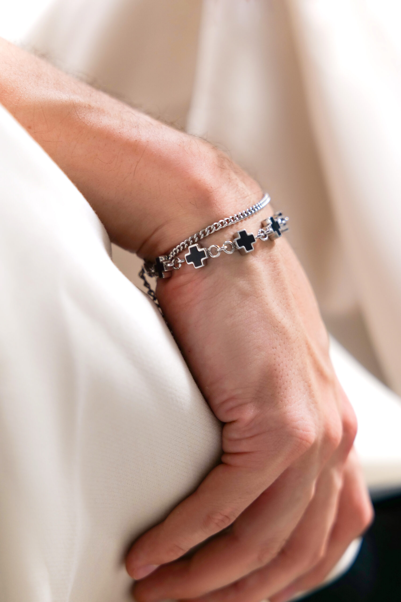 Dark resin. Solid steel. This 14g bracelet delivers a strong visual edge with its black epoxy inlays and sturdy 18+1cm build. Sleek, tough, and made to stand out.
