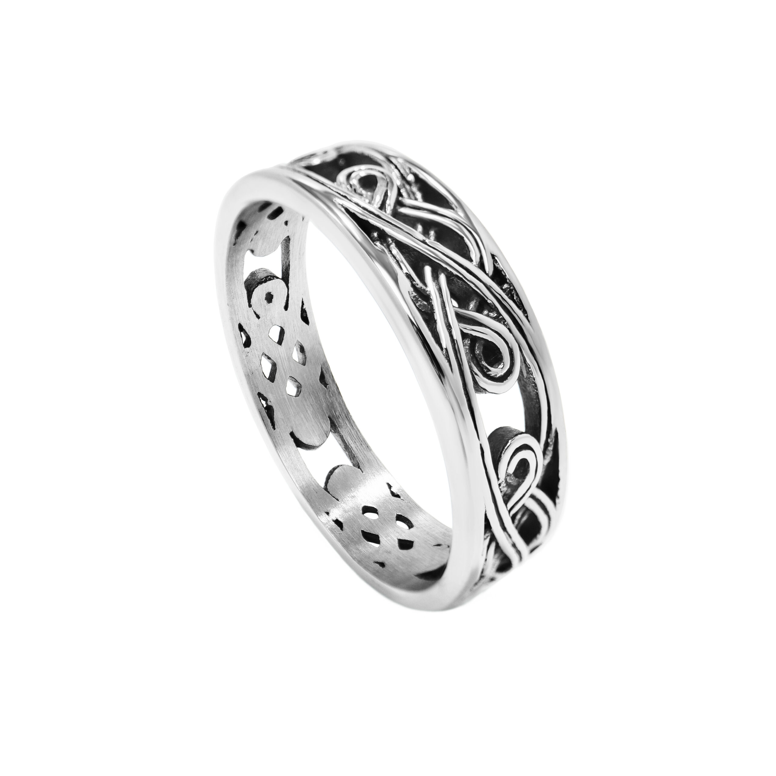 Carved with deep, interlocking patterns, the Vyre Ring brings a rugged edge and old-world strength to a modern silhouette.